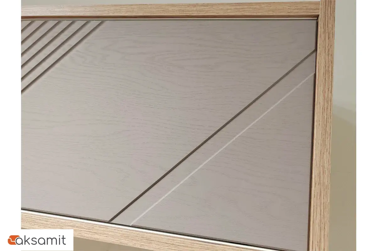 - Фасад тумбы выполнен из МДФ облицованного пленкой в цвете ясень грей софт.