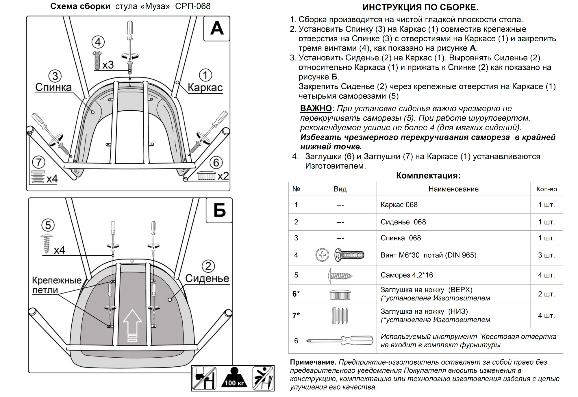 Требуется проведение осмотра стула как минимум один раз в шесть месяцев или чаще (в зависимости от эксплуатации).