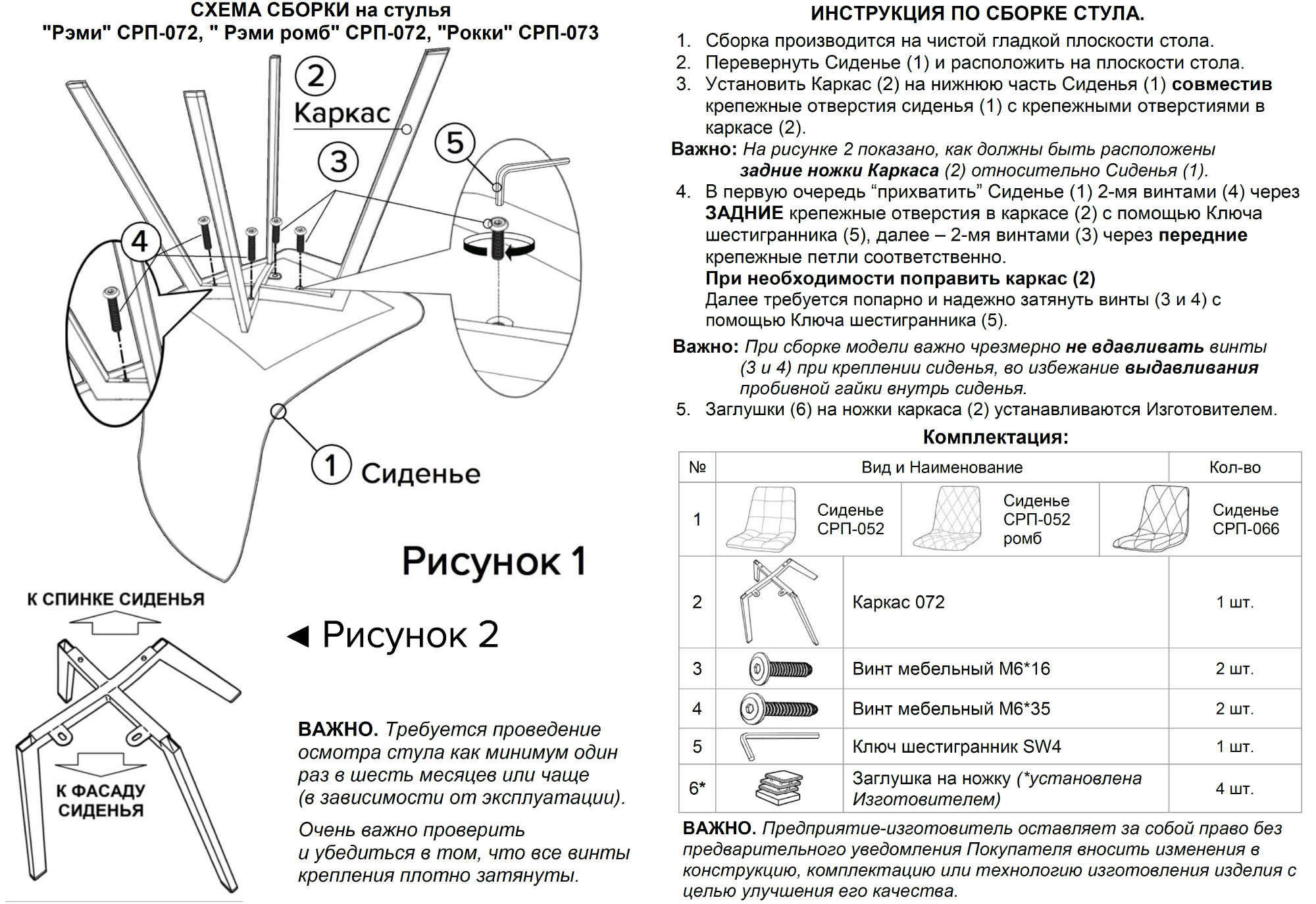 Требуется проведение осмотра стула как минимум один раз в шесть месяцев или чаще (в зависимости от эксплуатации).